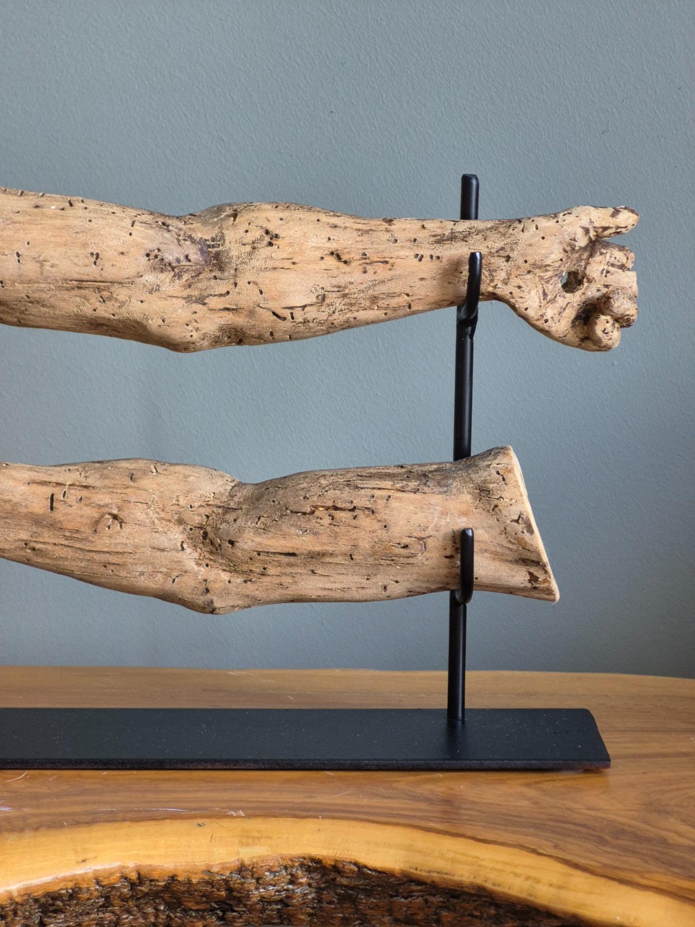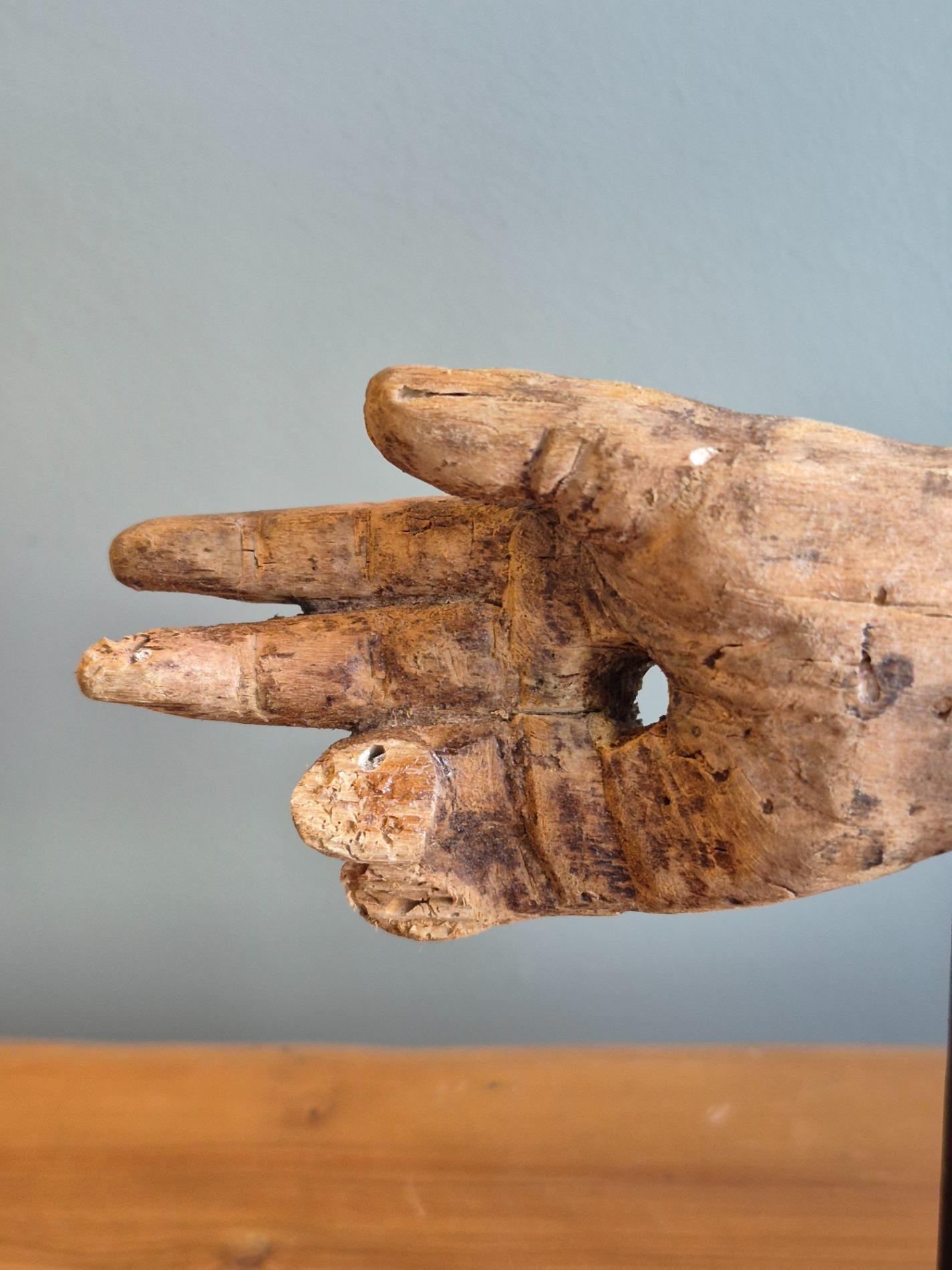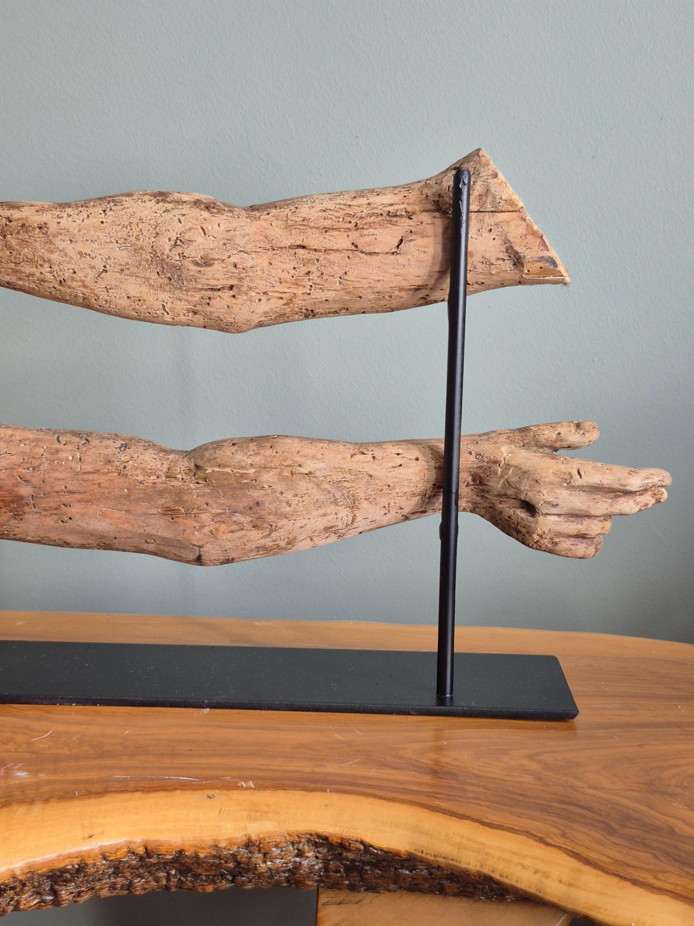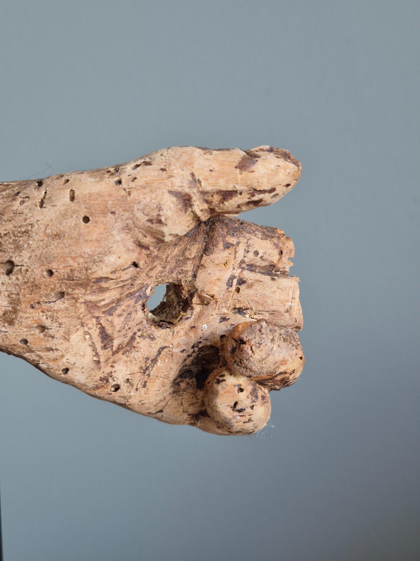 Pair of 17th C arms of a corpus christ. Made of limewood with nice patina and traces of time. Mounted on a custom made metal display.