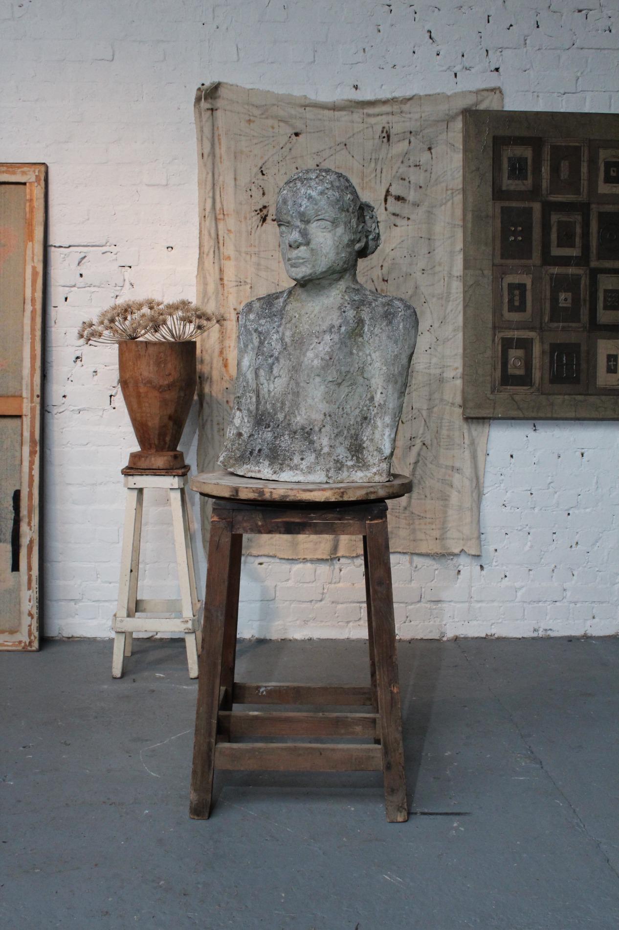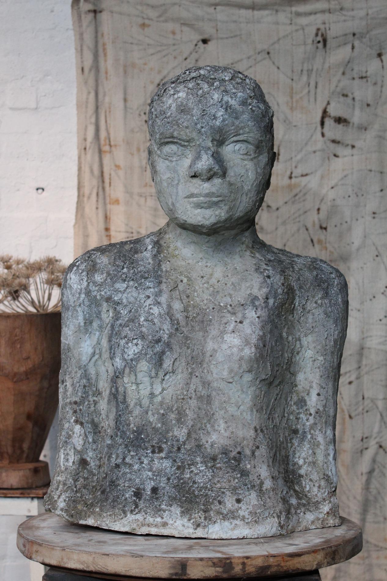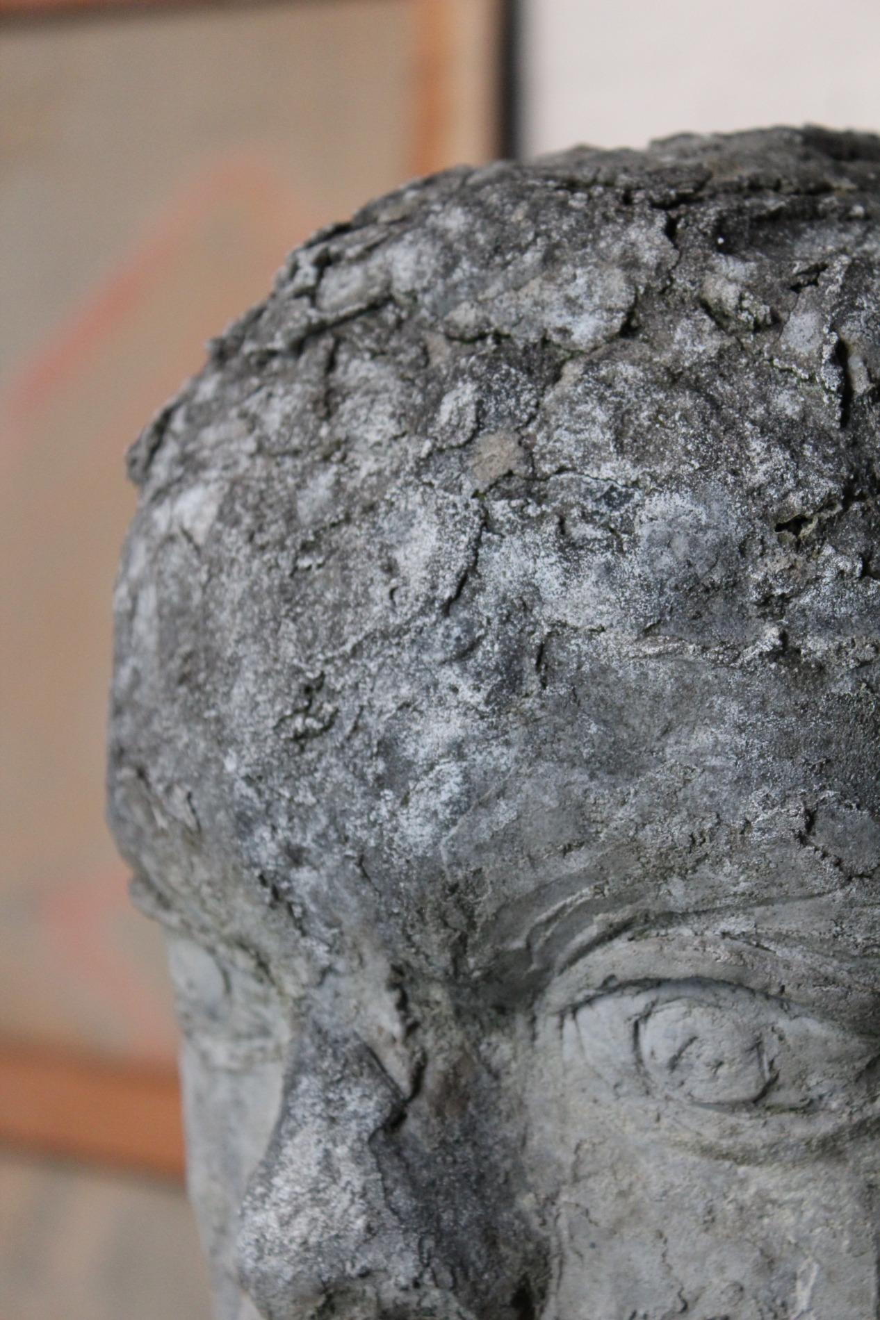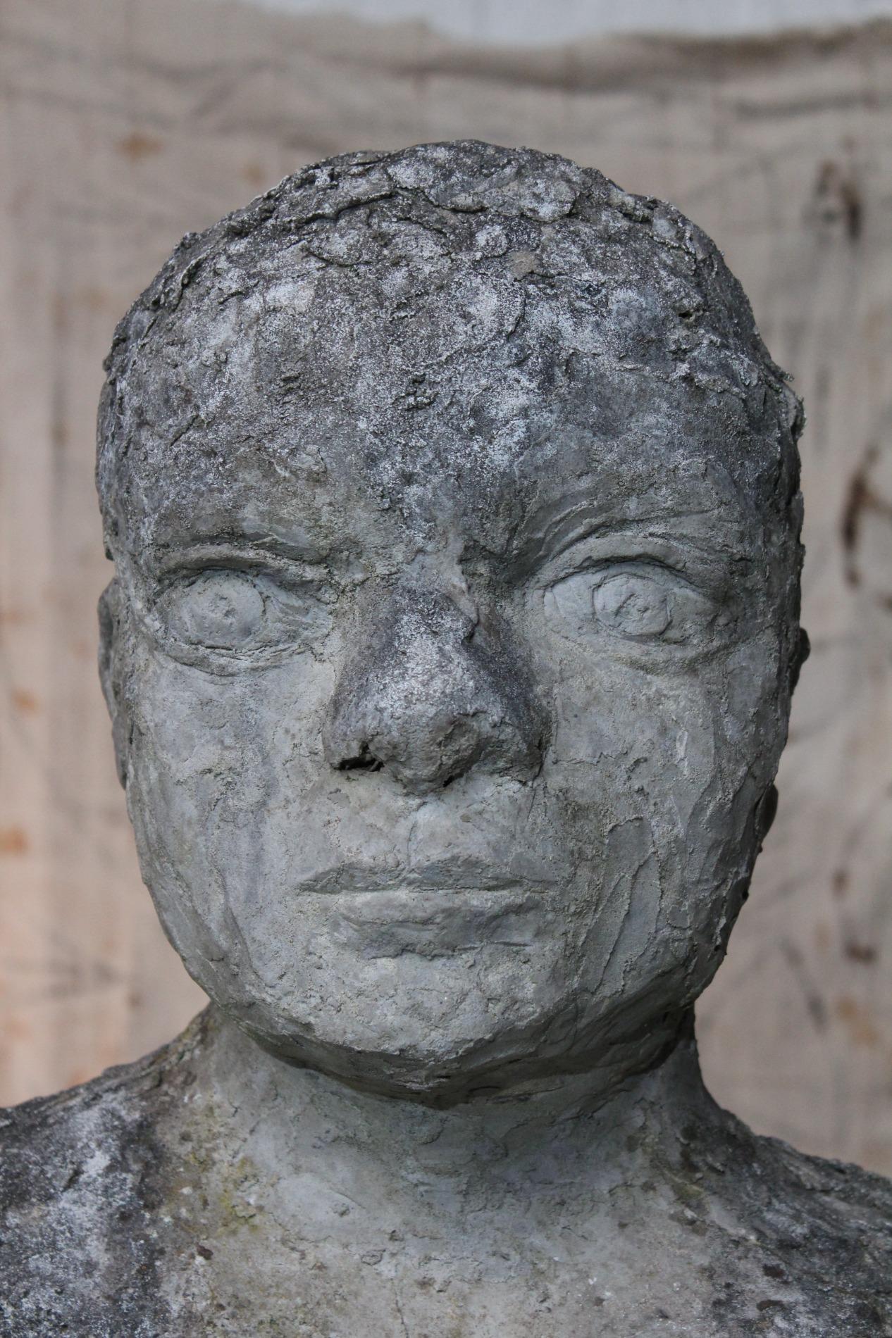 Artistic primitive study of a woman, made of terracotta on a metal base. Origin 1970s Belgium, and has been standing in a garden for years, the weather influences gives the sculpture a unique and amazing patina. The sculpture was hand sculpted and thick layered, which gives a lot of structure.