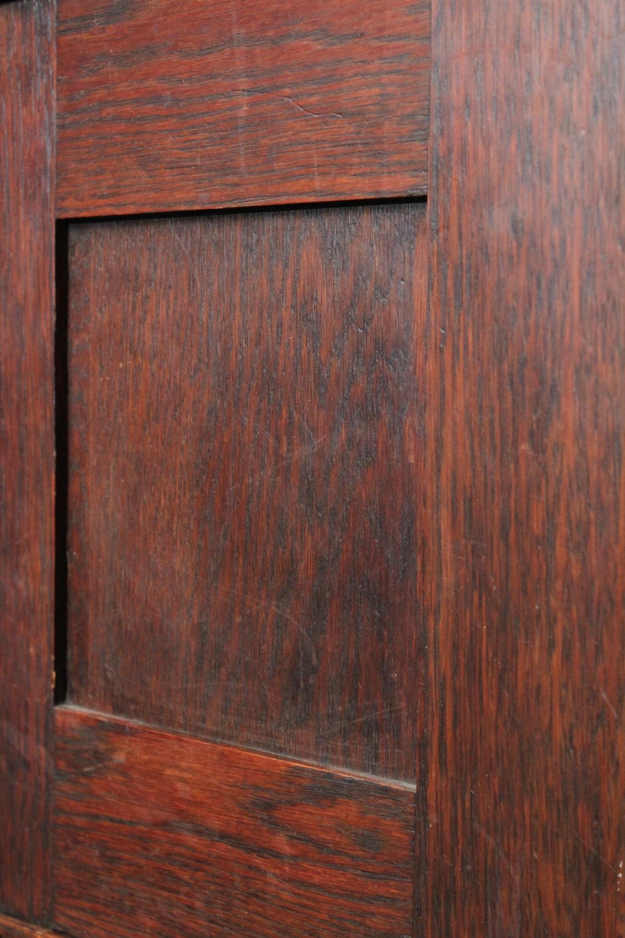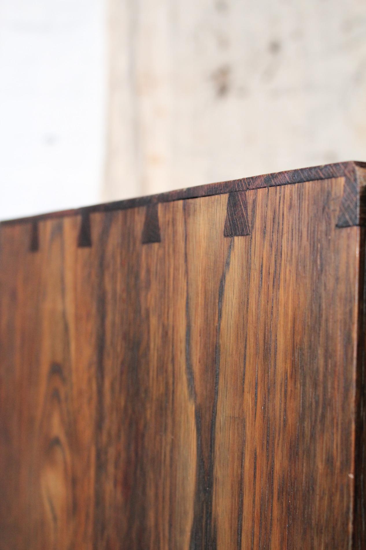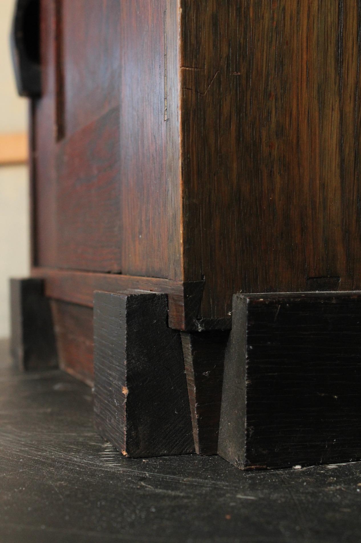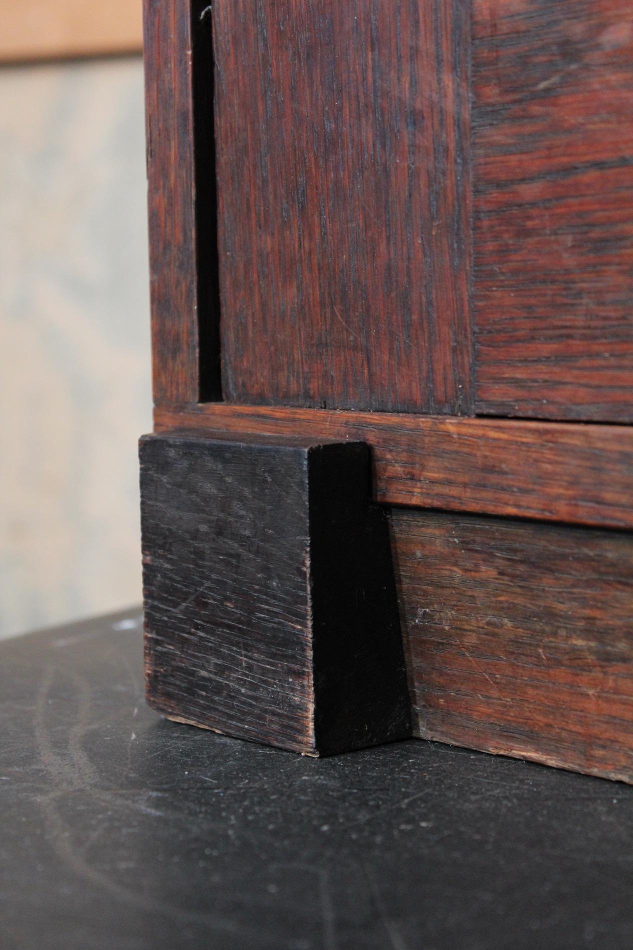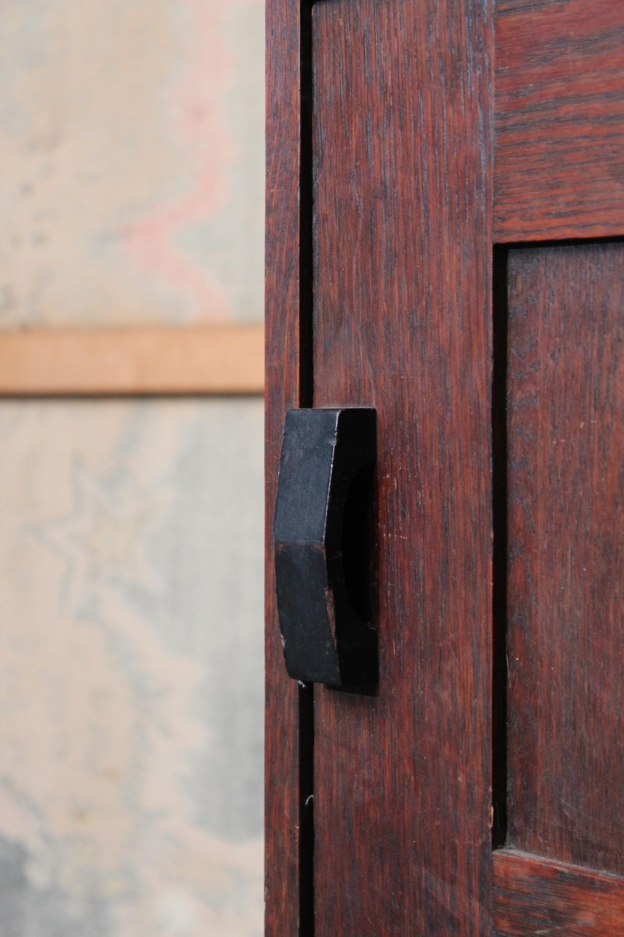 Original cabinet made by the 'Amsterdamse school'. In beautiful used condition with its typical strong straight lined design and cubic elements such as the 'cube' feet and the cubic door handle. Origin Holland 1920s