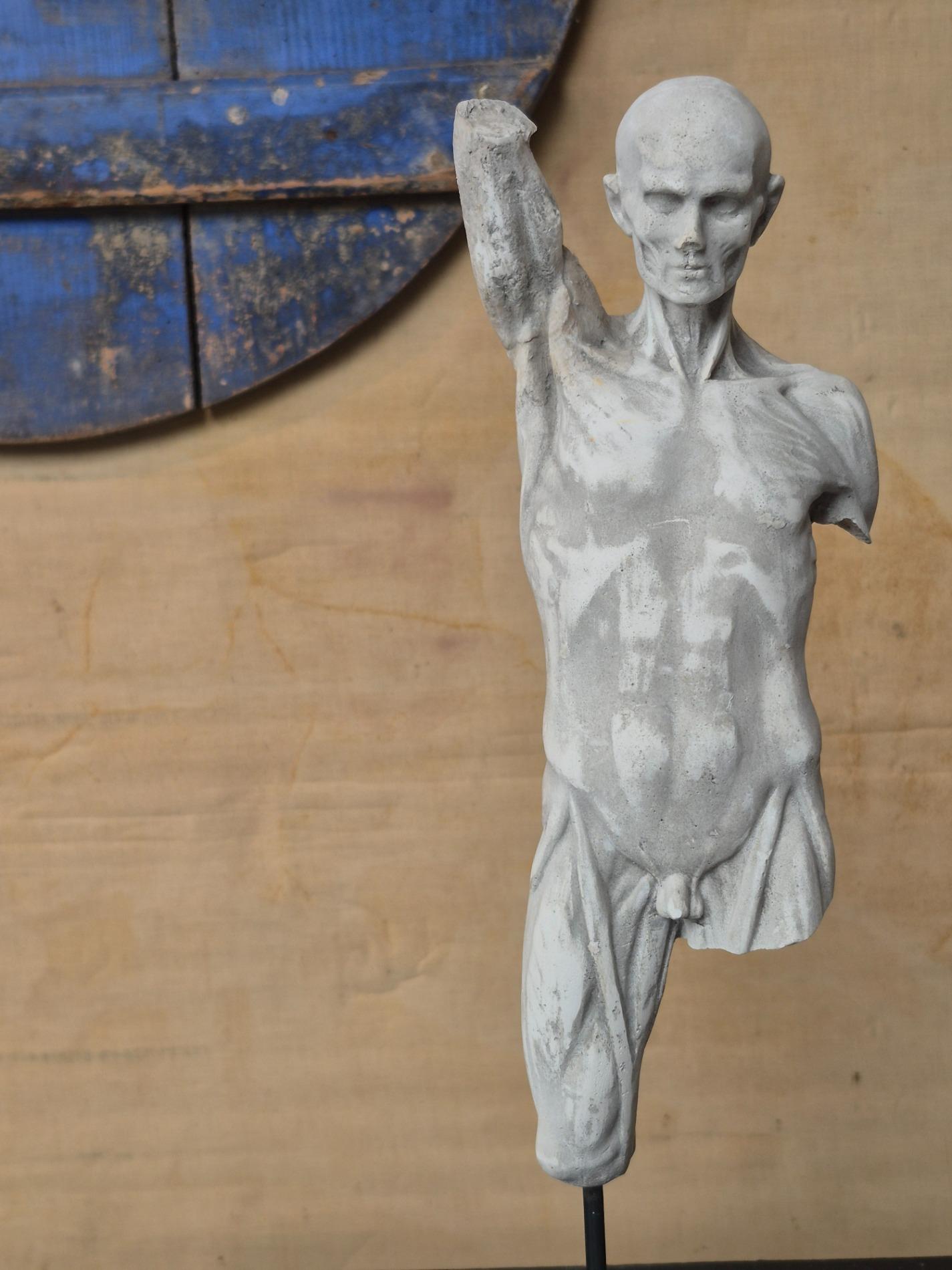 Old plaster fragment of an ecorché. Nice anatomical details, with traces of time and use.