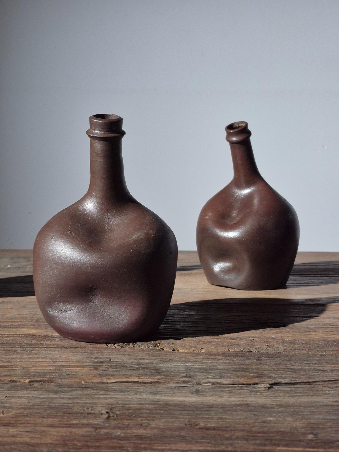 Each jar is a unique piece of art, brown coloured with worn patine.