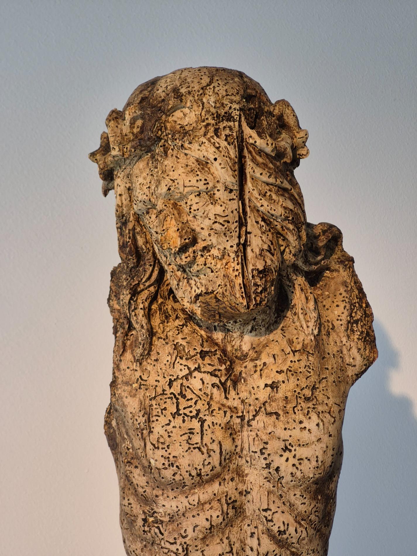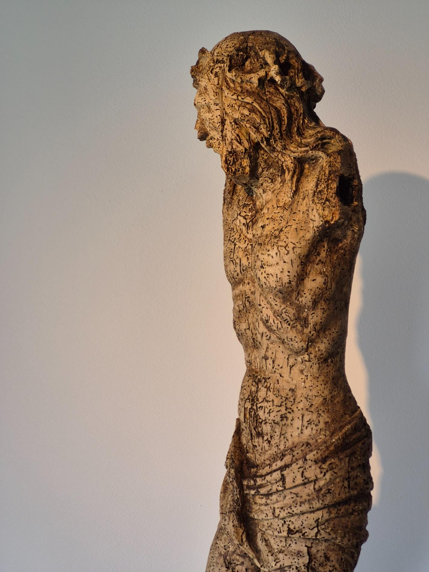 Wonderful weathered 17th century Flemish corpus Christ. This Christ has his traces of age but the highly expressive details and anatomy are still visible. You can see the ribs, muscles and tendons very clearly. You can see a suffering pose and facial expression.
