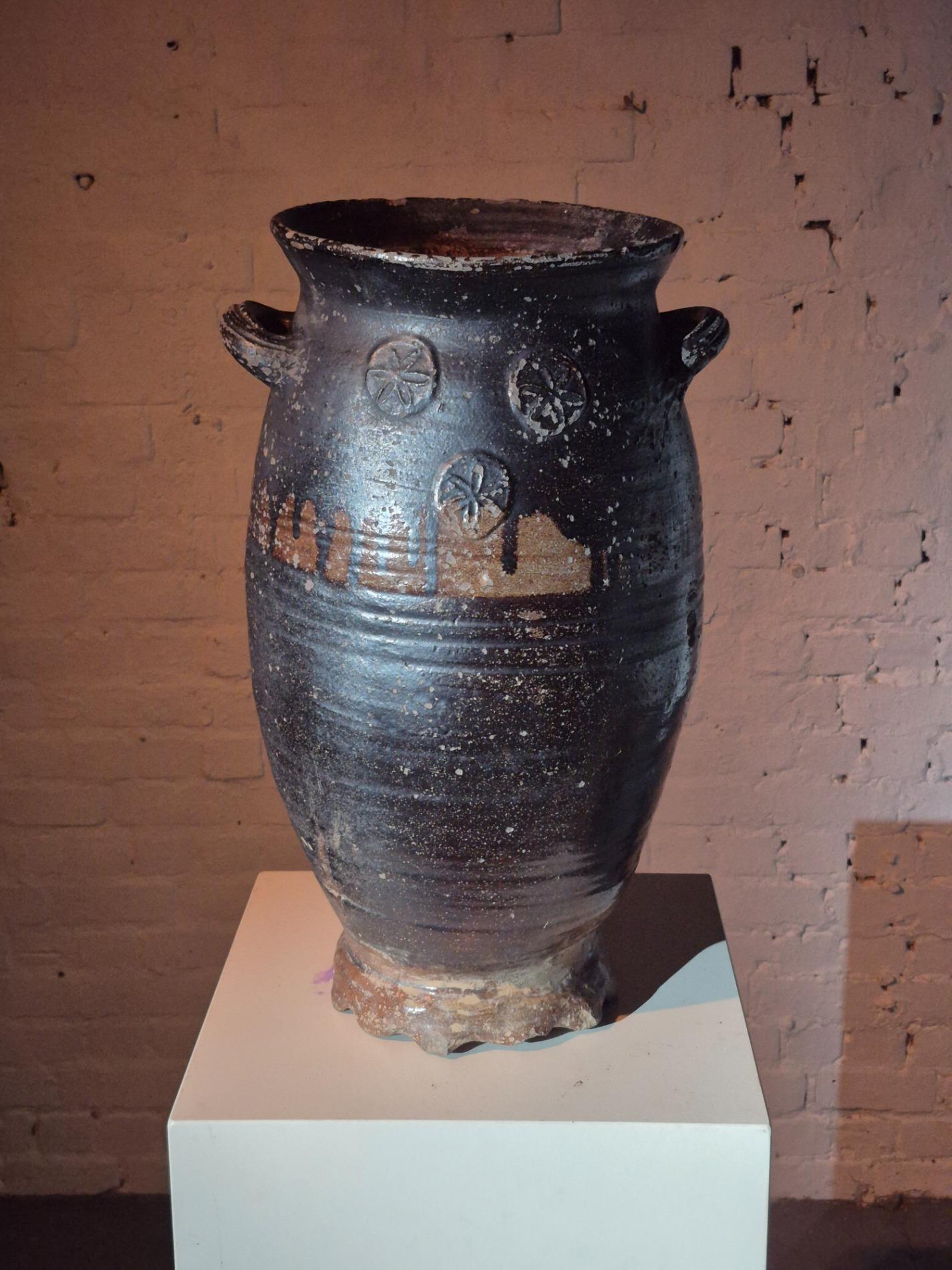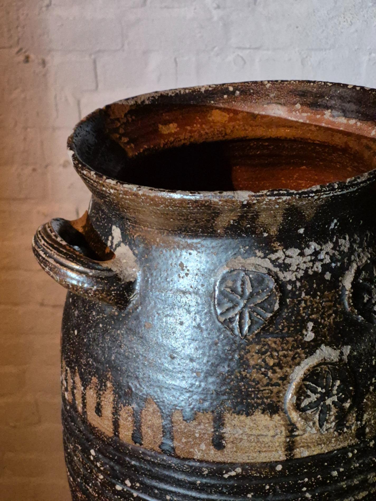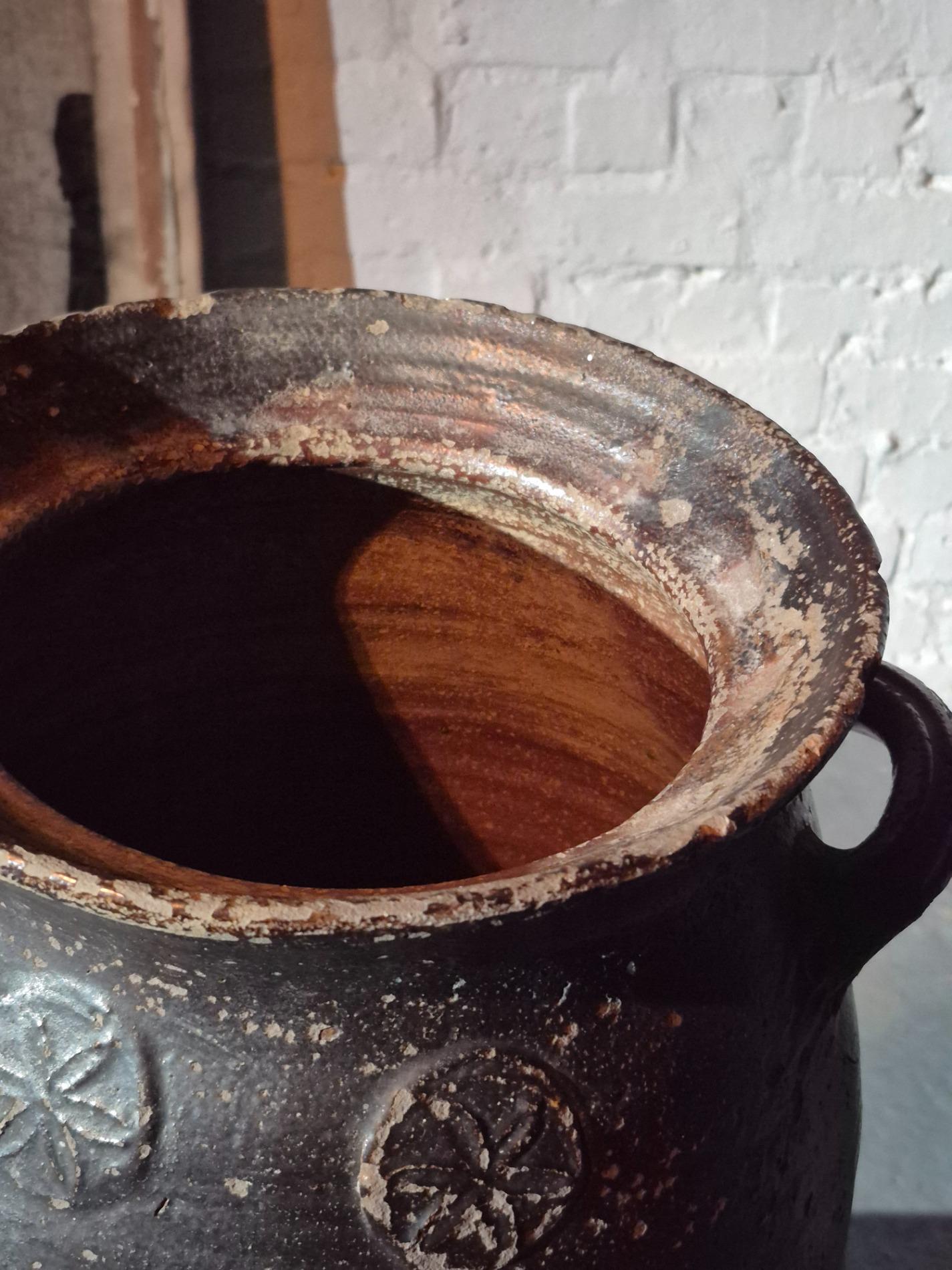 17thC earthenware Langerwehe jar. In beautiful weathered condition, no cracks.