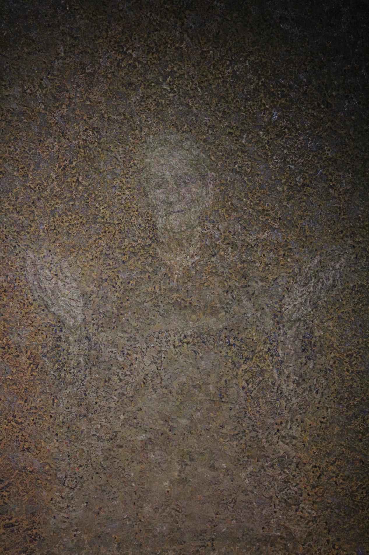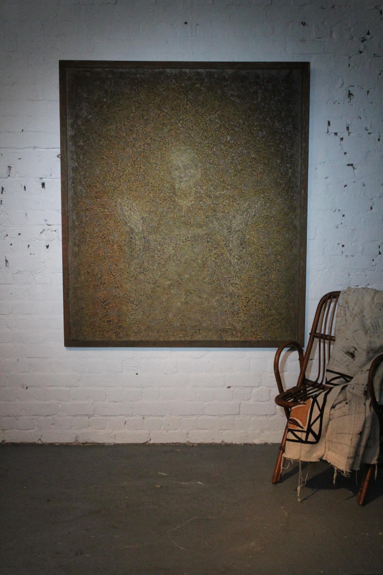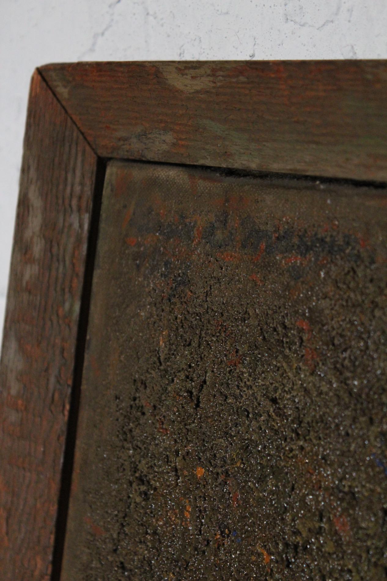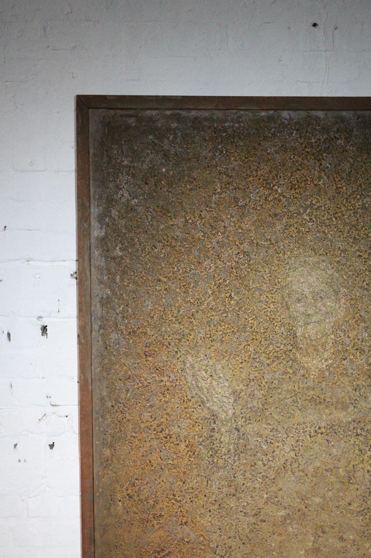 Monumental thick layered abstract painting titled 'The after'. Signed Louis De Maeyer 9 september 1937. Thick layered dots of oil paint on canvas which gives a very special brutal atmosphere. In the back of the painting you can see the appearance of a person. Louis De Maeyer was a Belgian artist born in Berchem near Antwerp in 1903 and died in 1981 in Terneuzen, the Netherlands. He was a painter who trained at the Academy and the Higher Institute in Antwerp under the direction of Is. Opsomer (1920 - 1926). Soon, light and matter will be the great poles around which his art will evolve.