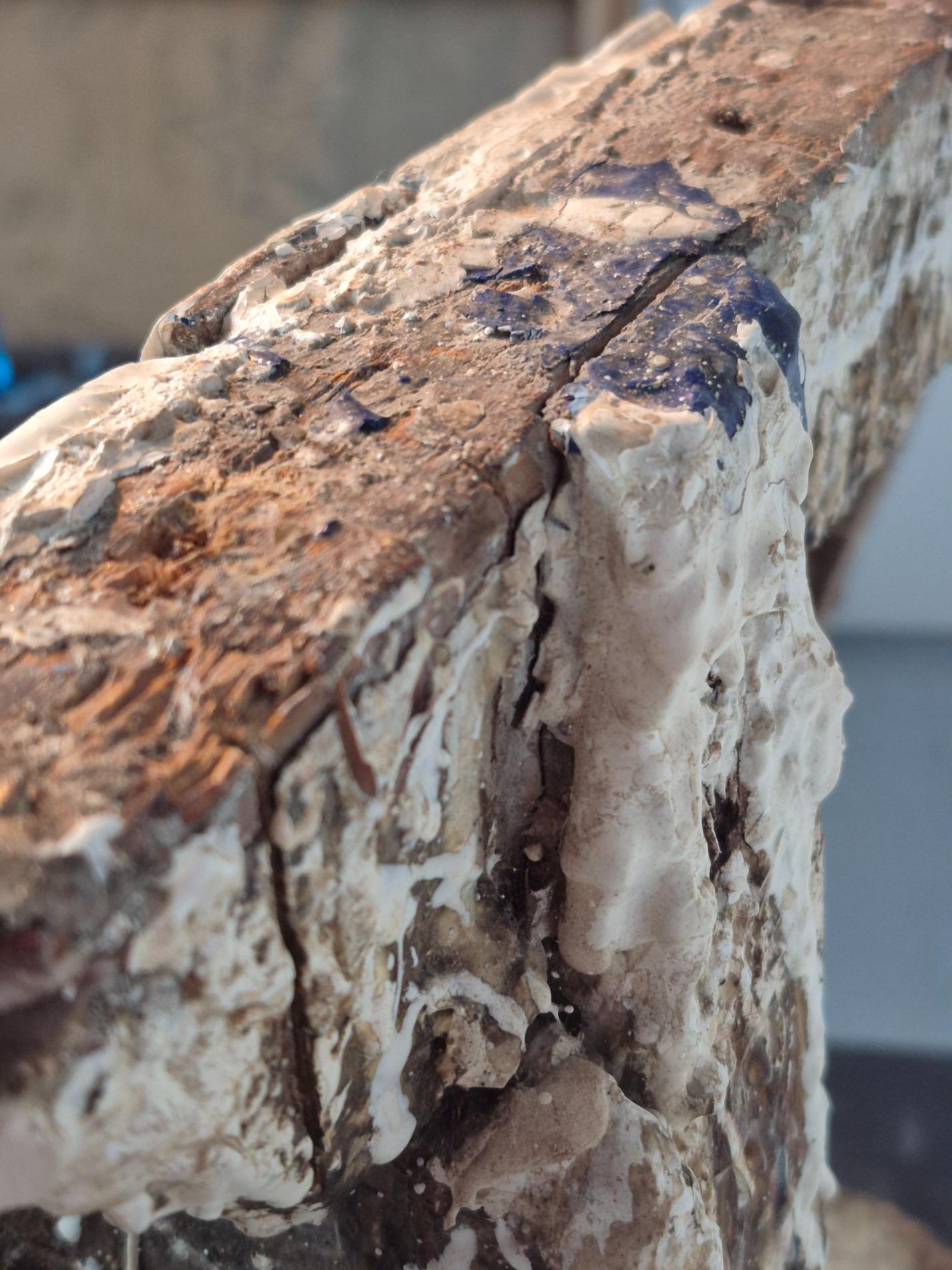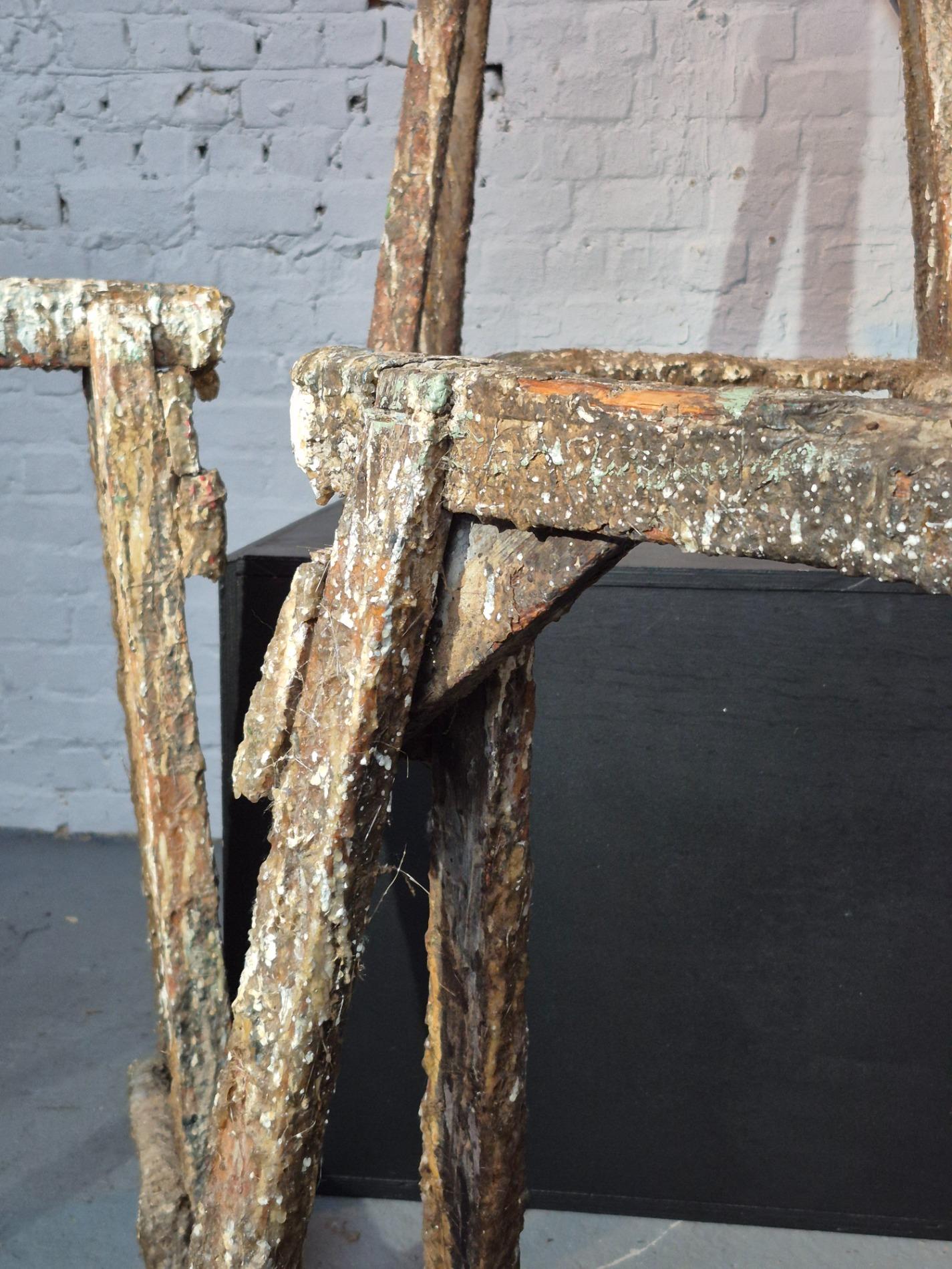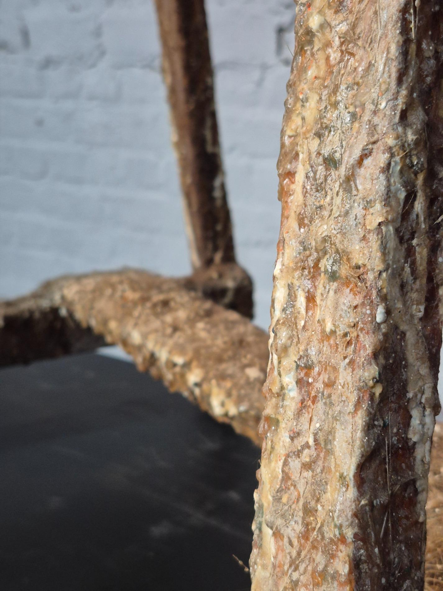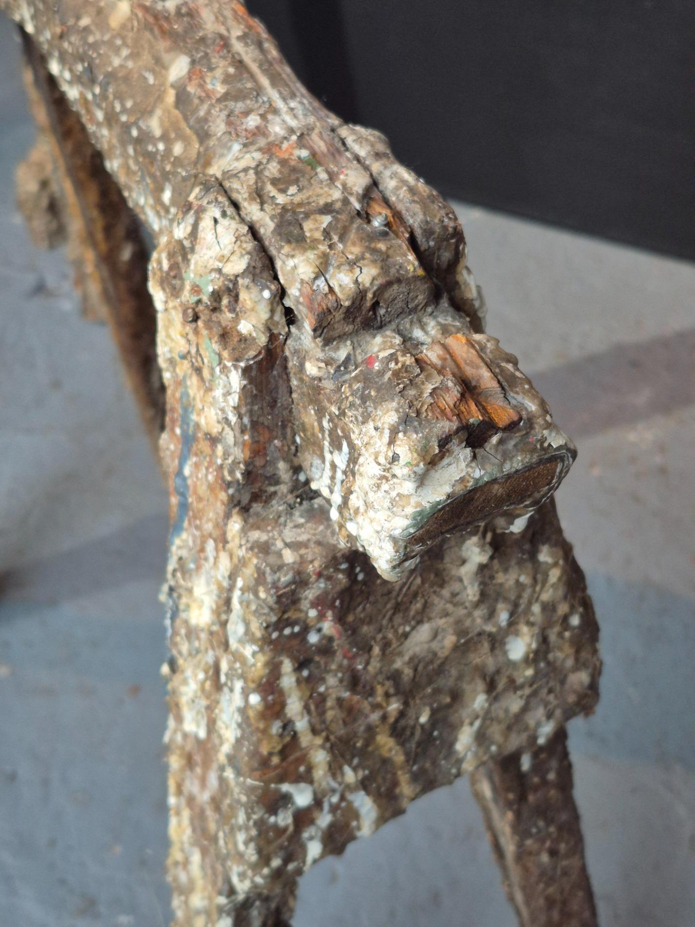Set of 4 old artist workshop trestles. Made of wood with a thick layer of paint and polyester. Found in an old artist atelier in Belgium. These trestles went pieces of art through time and use.