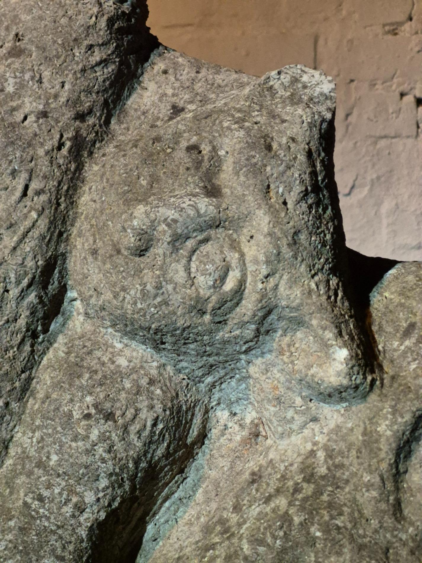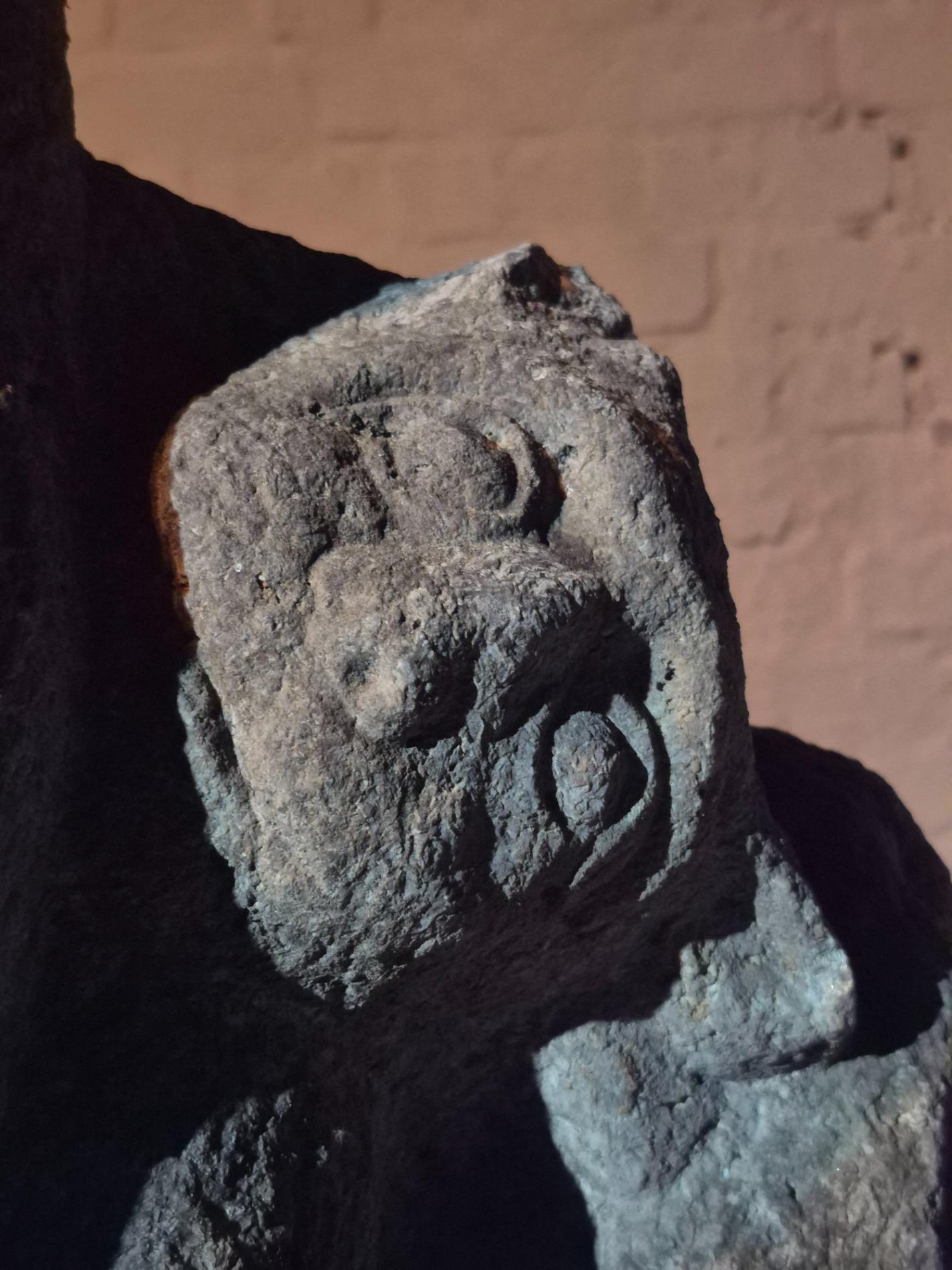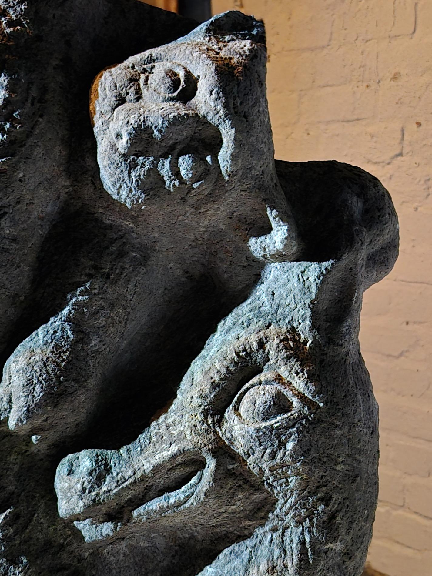 The surface shows nice raw carvings, slightly weathered but all details still clearly visible.