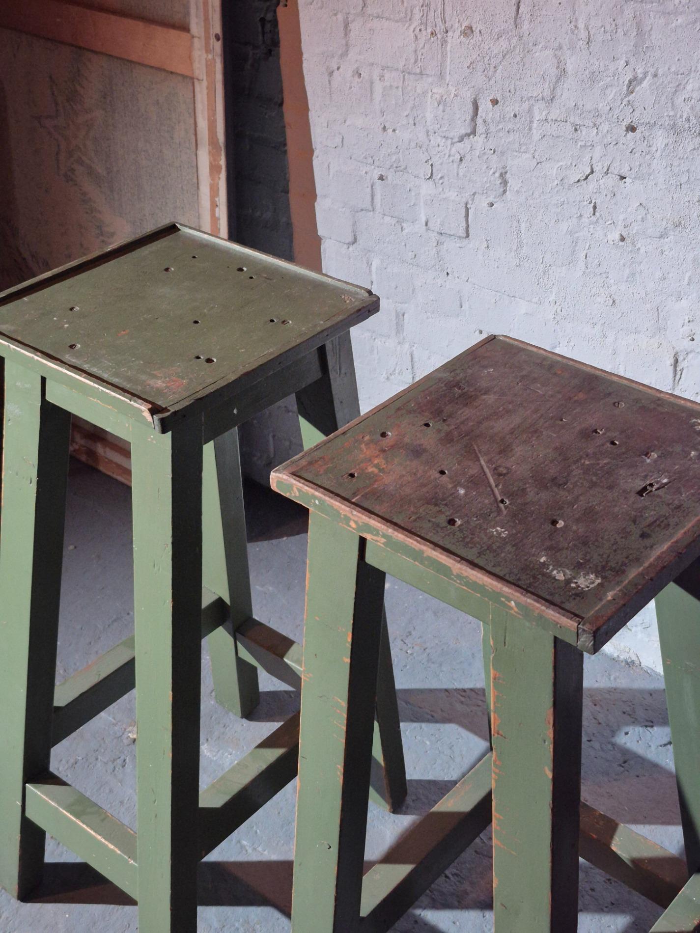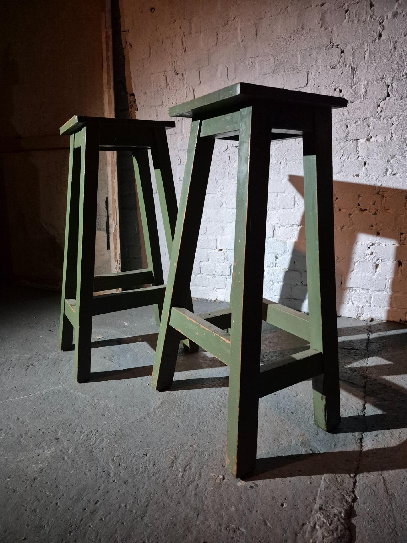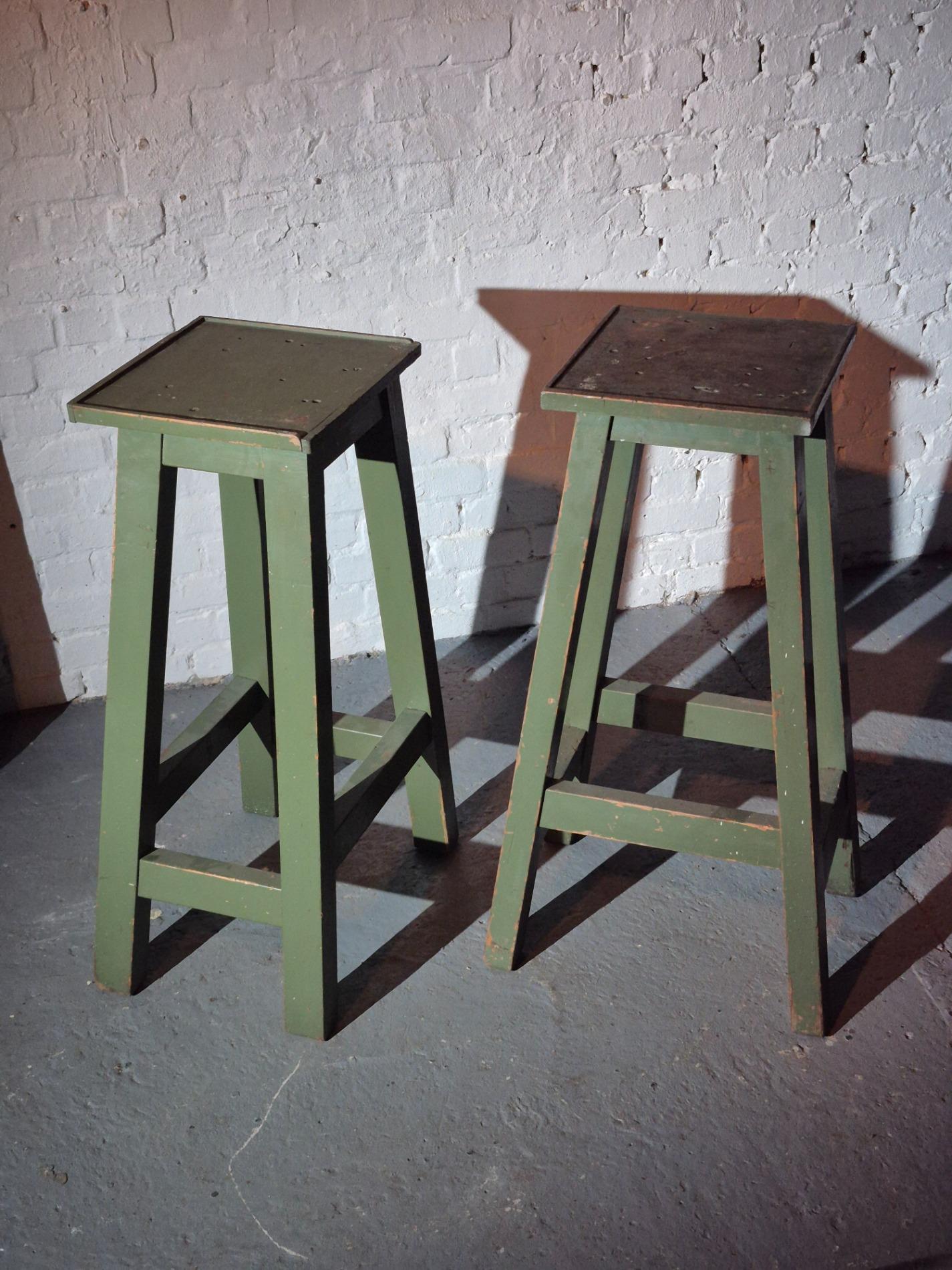 Pair of old boatfactory workstands, perfectly usable as displays for art, books, flowers...