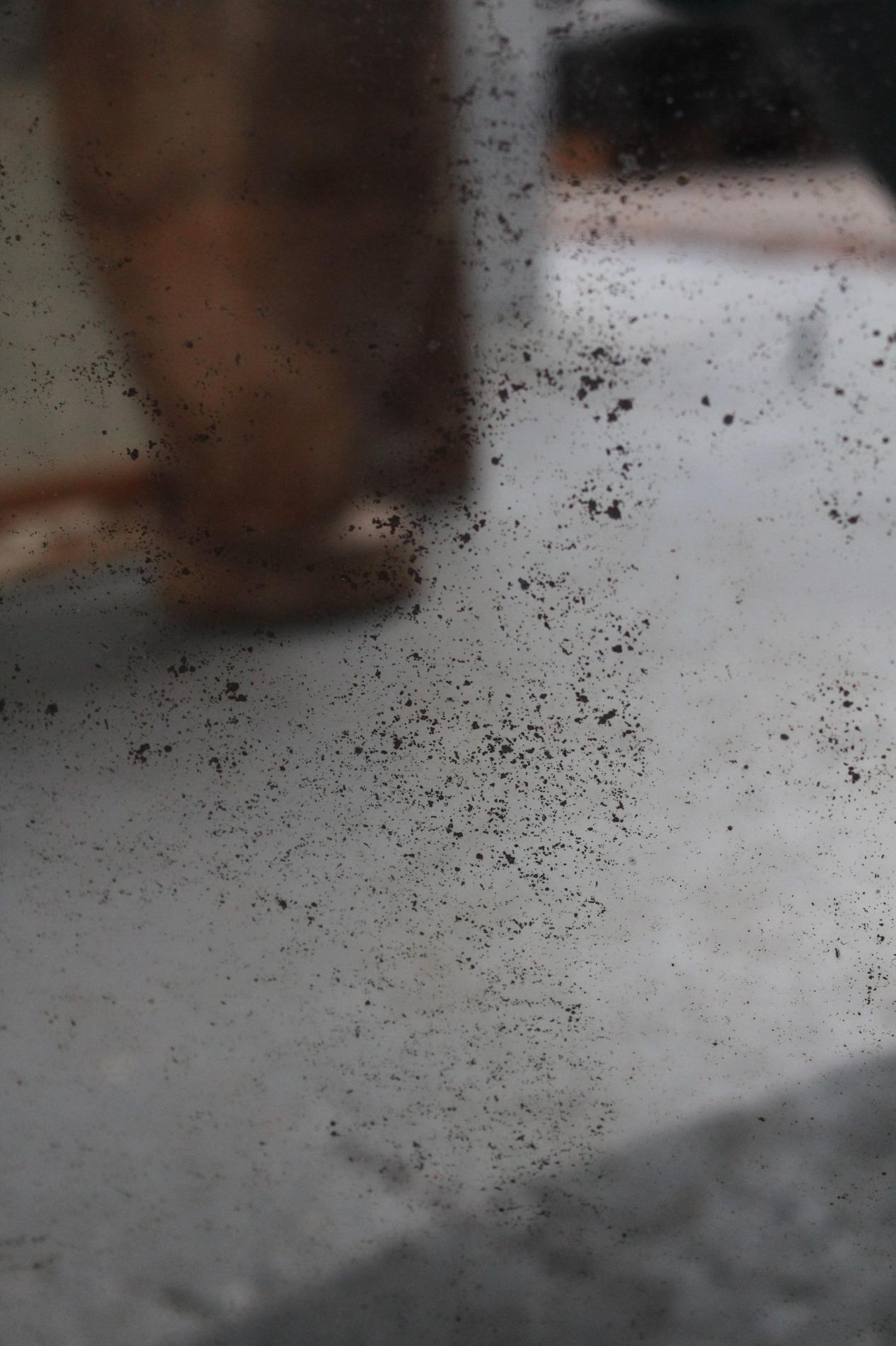 Old large bistro mirror, origin Paris France 1950s. Ebonised black classic frame with nicely worn end subtile patina. Original mirror glass in very good condition with nice patina on the glass. A mirror with lots of character.