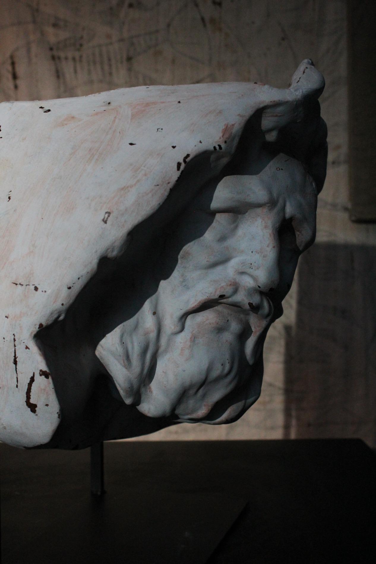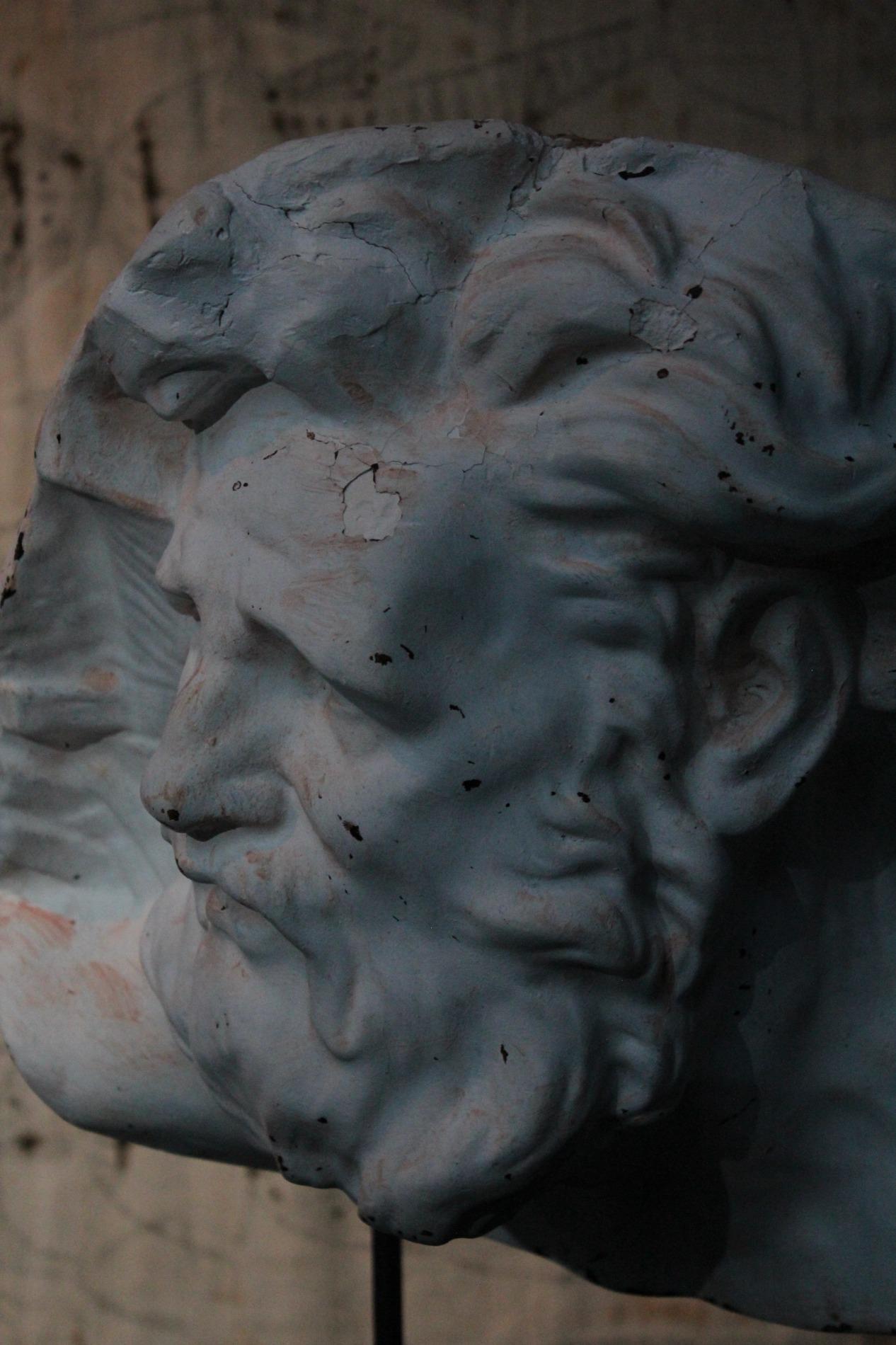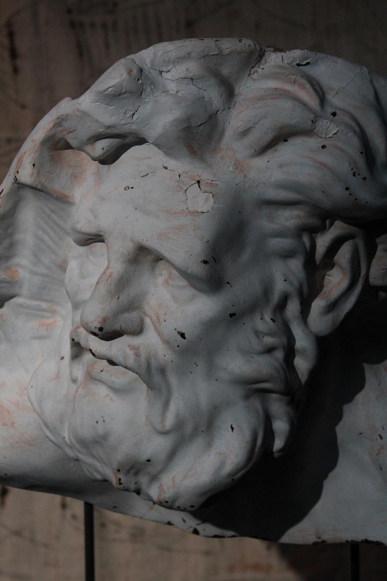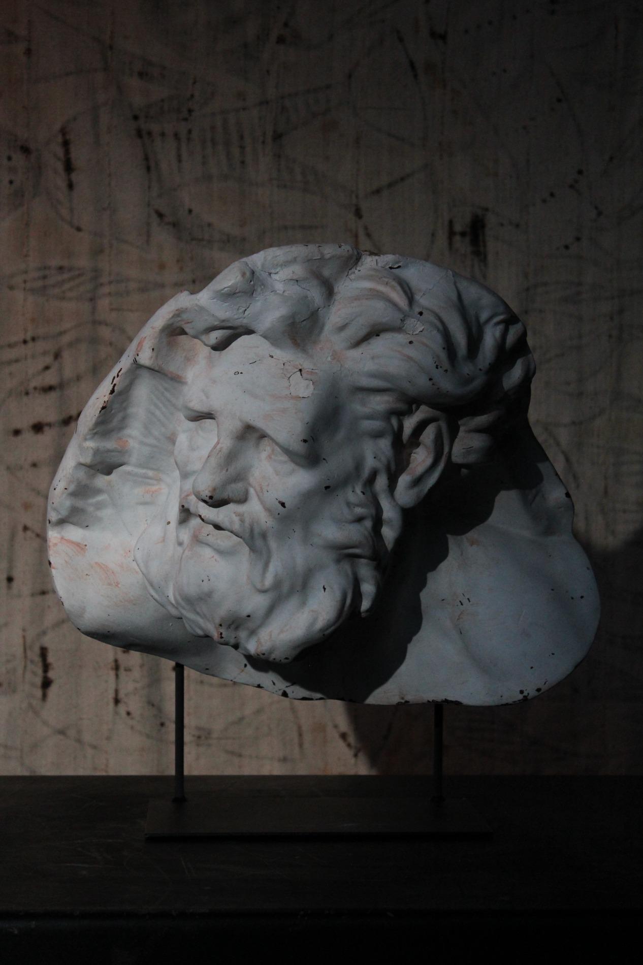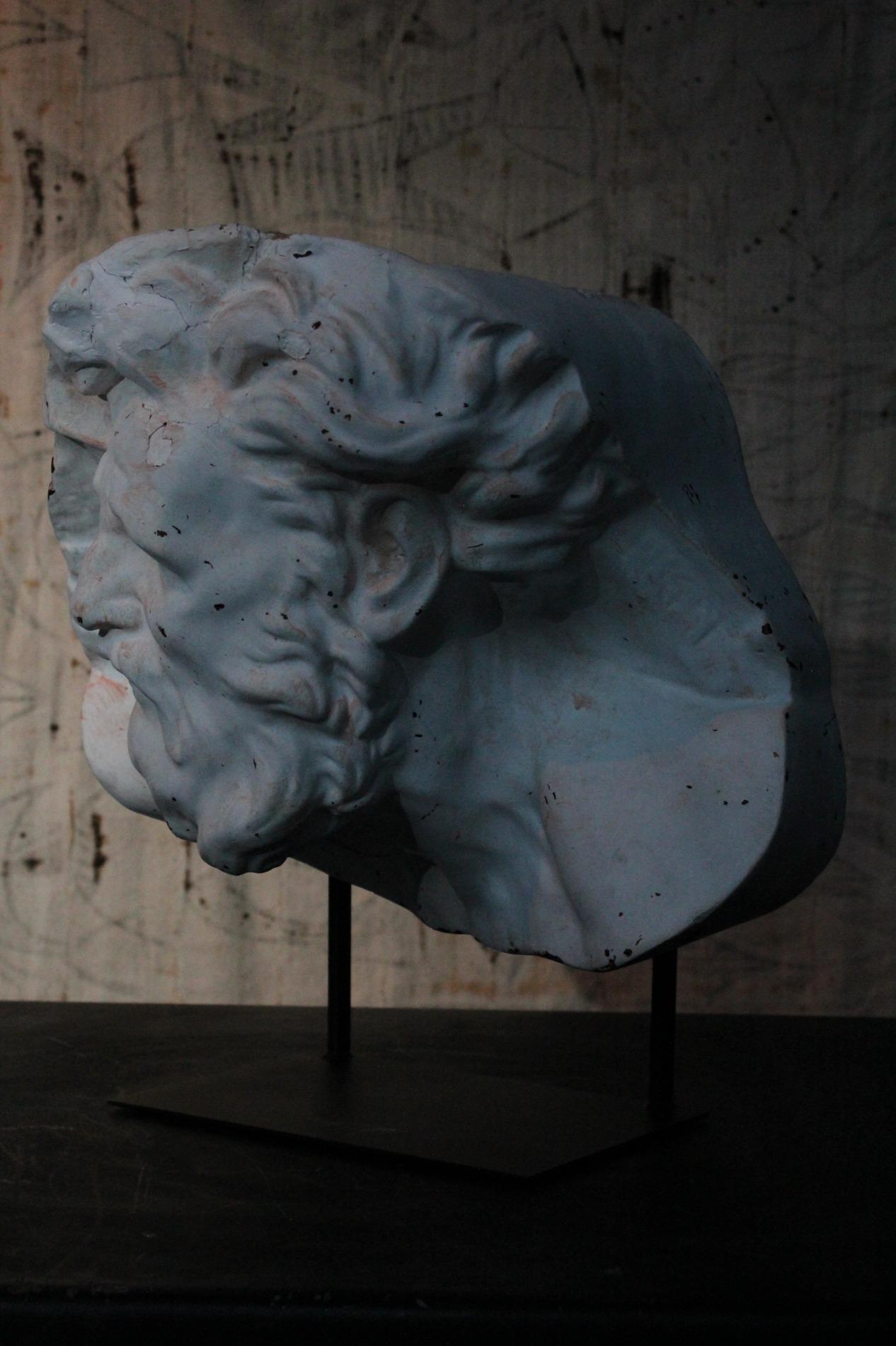 Academic plaster fragment depicting Hercules. Signed but unreadable, origin France 1920s. Comes with custom made metal base.
