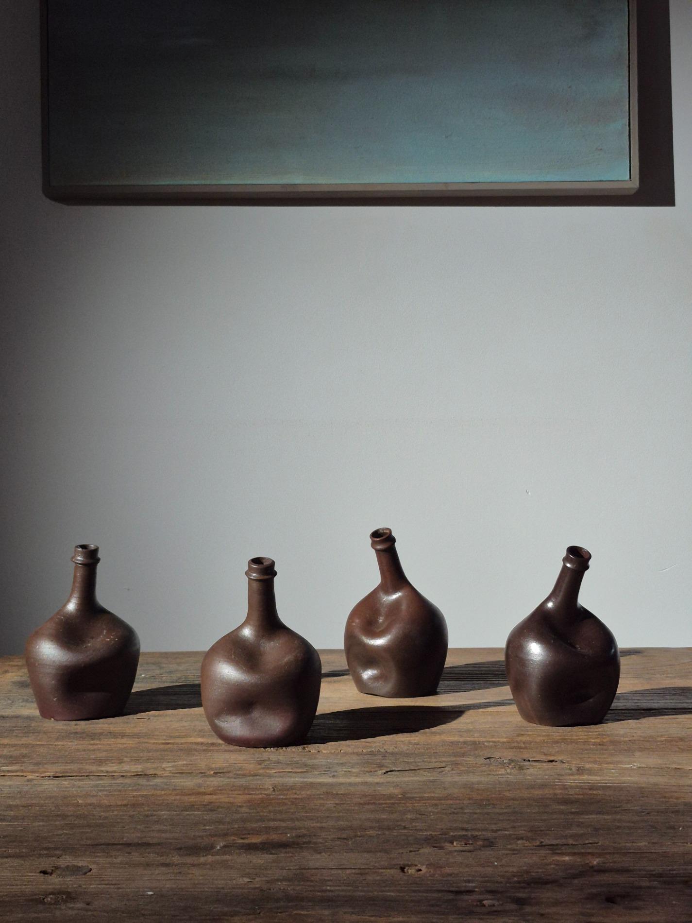 Set of 4 old imploded jars, handmade stoneware 1970s Japan.