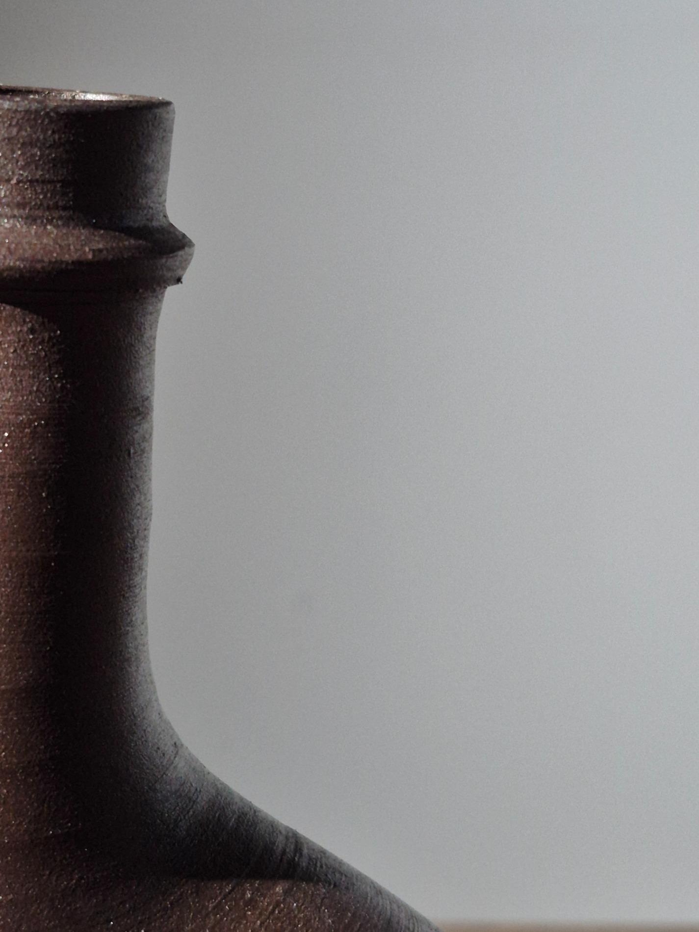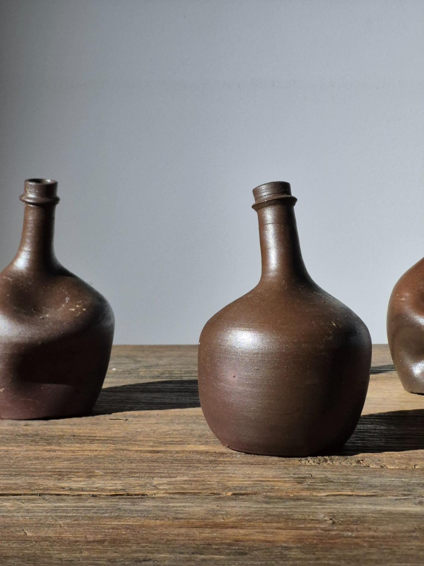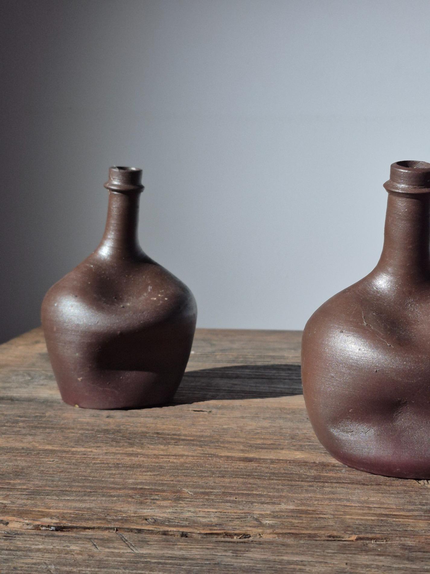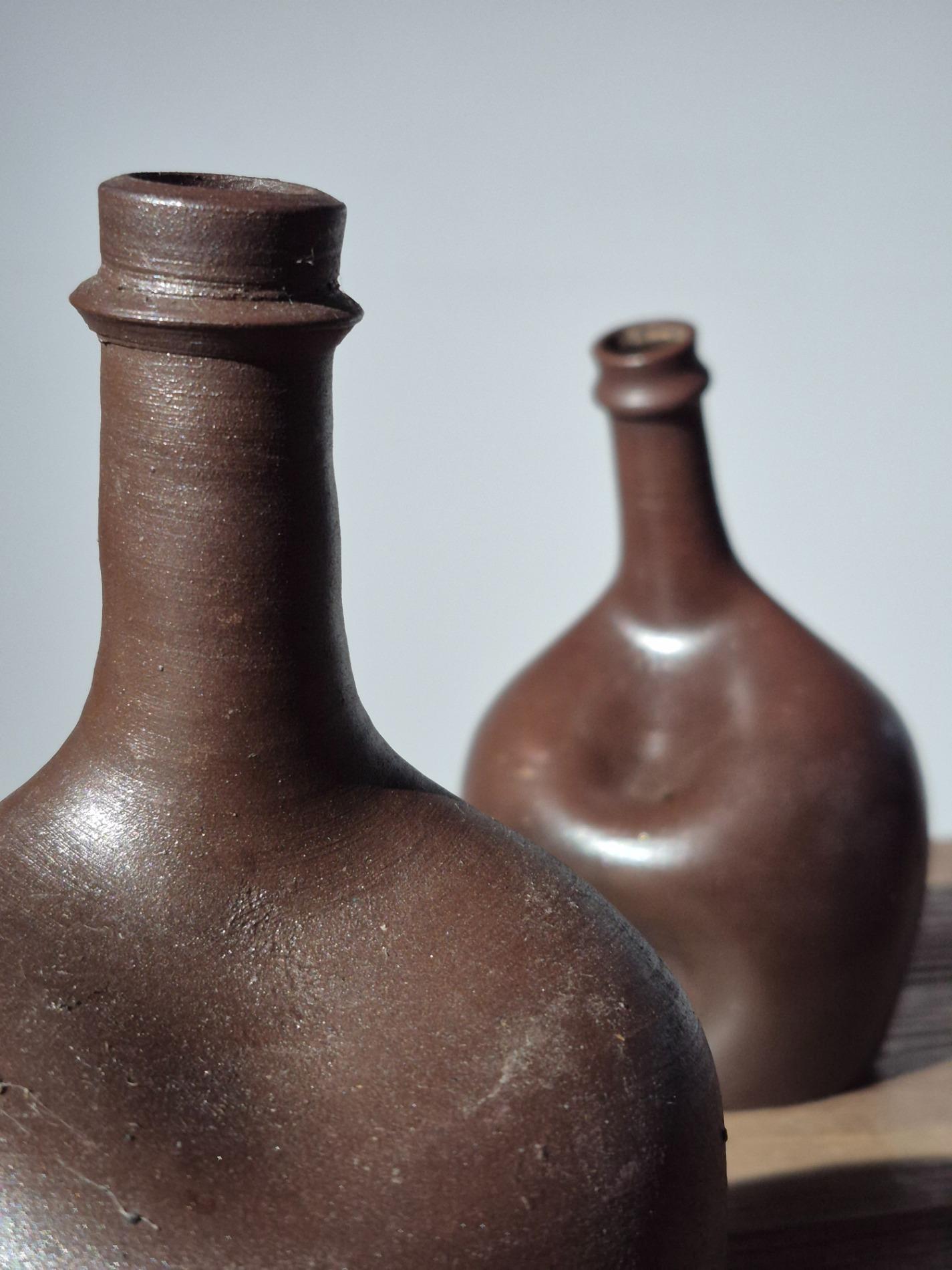 Each jar is a unique piece of art, brown coloured with worn patine.