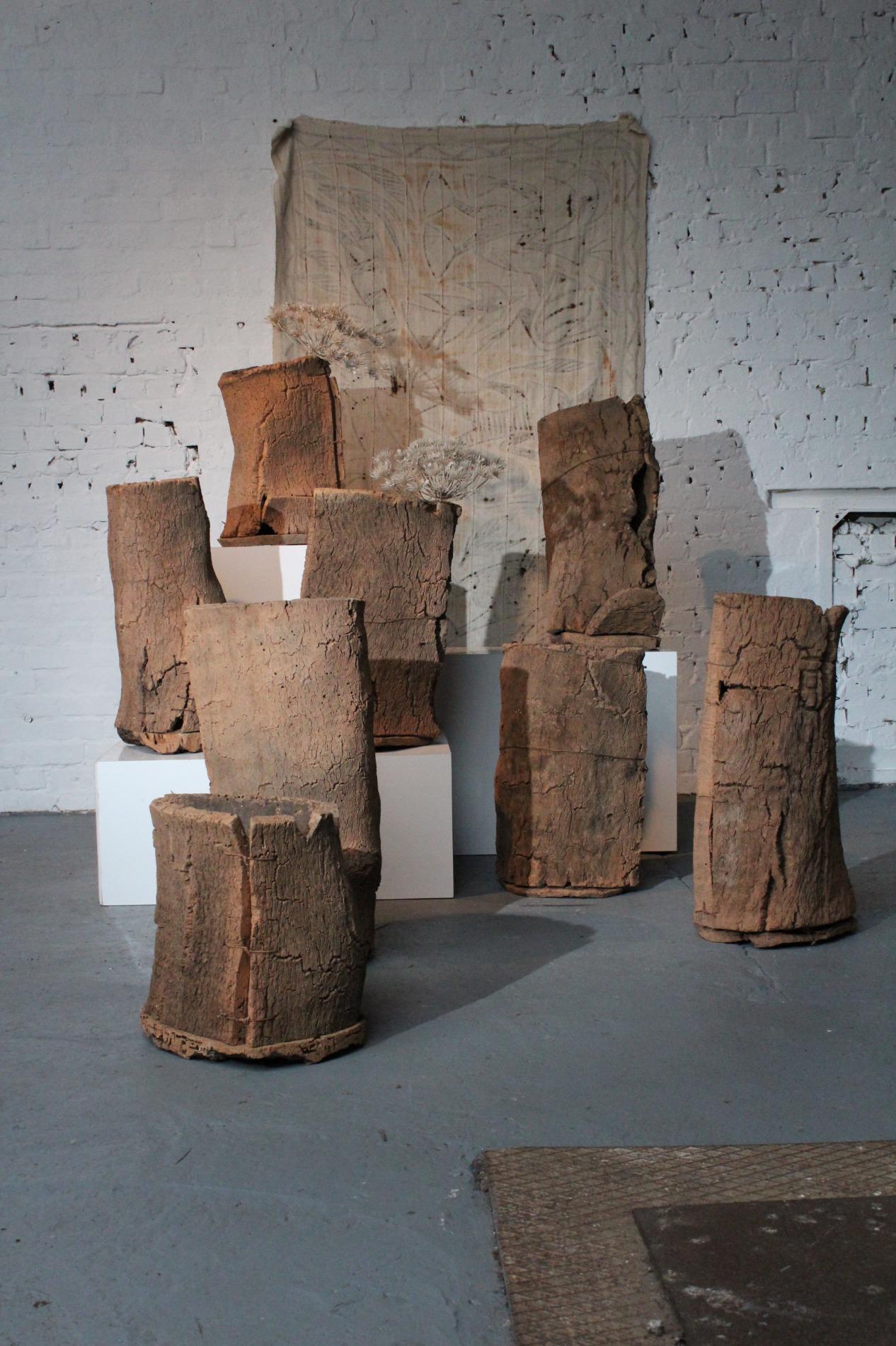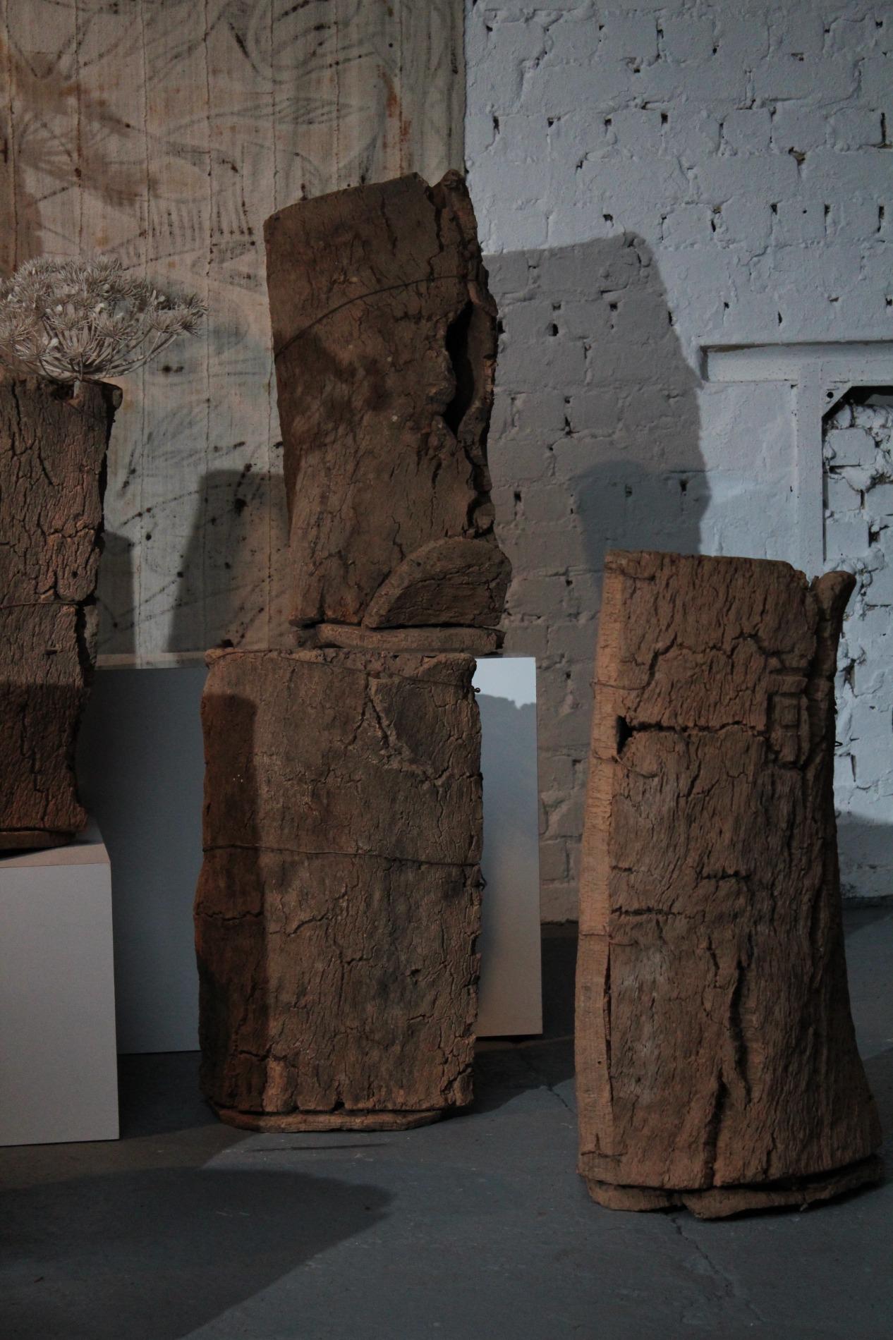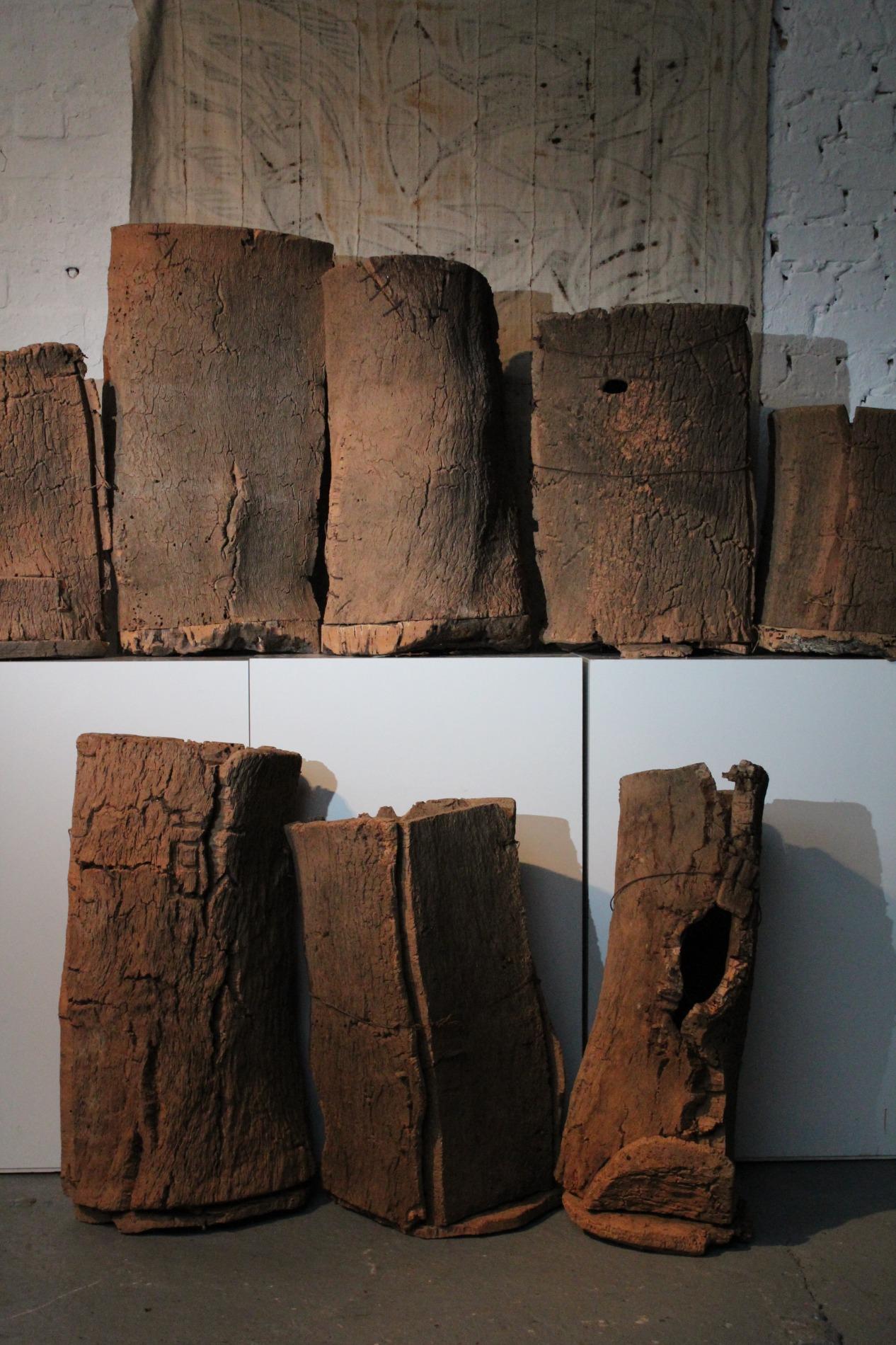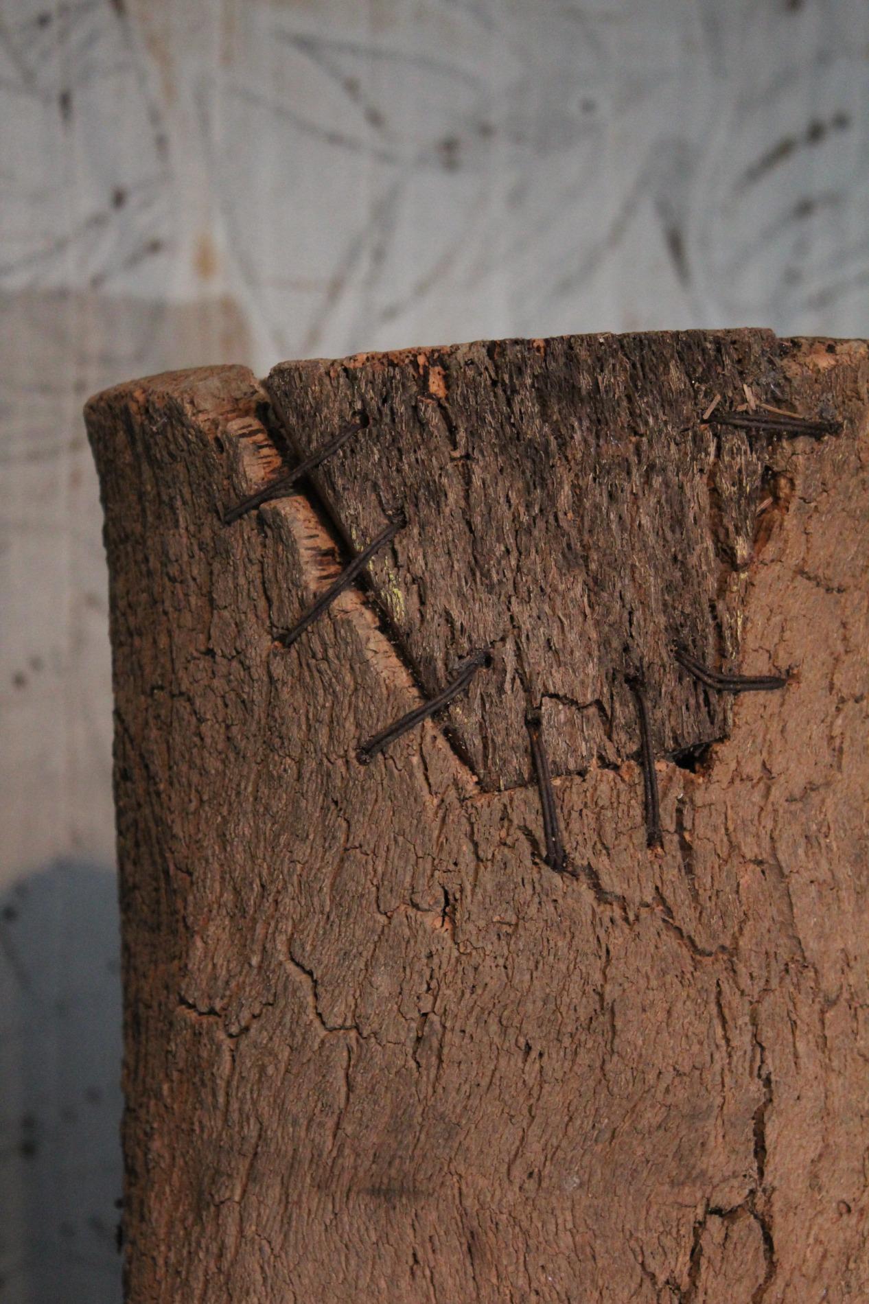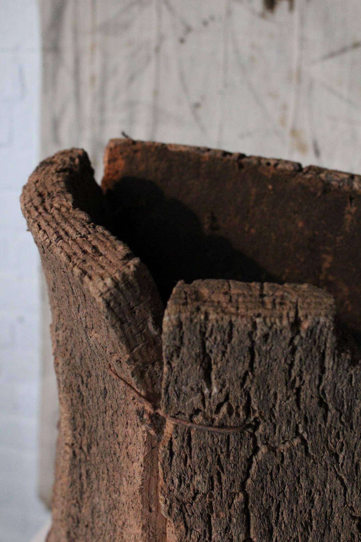 Set of 8 antique French beehives, made of thick pieces of cork assemled with wooden plugs, steelwire and nails. They were used in the coastal and mediterranean region of France, on the top of the hive they used a piece of slate to cover the beehive. In the hives are small holes which were the entrances for the bees. They have a beautiful colour and patina with a raw structure, real wabisabi pieces. Condition and wear consistent with age and use. Different dimensions, the largest has a height of 75cm and the smallest 41cm